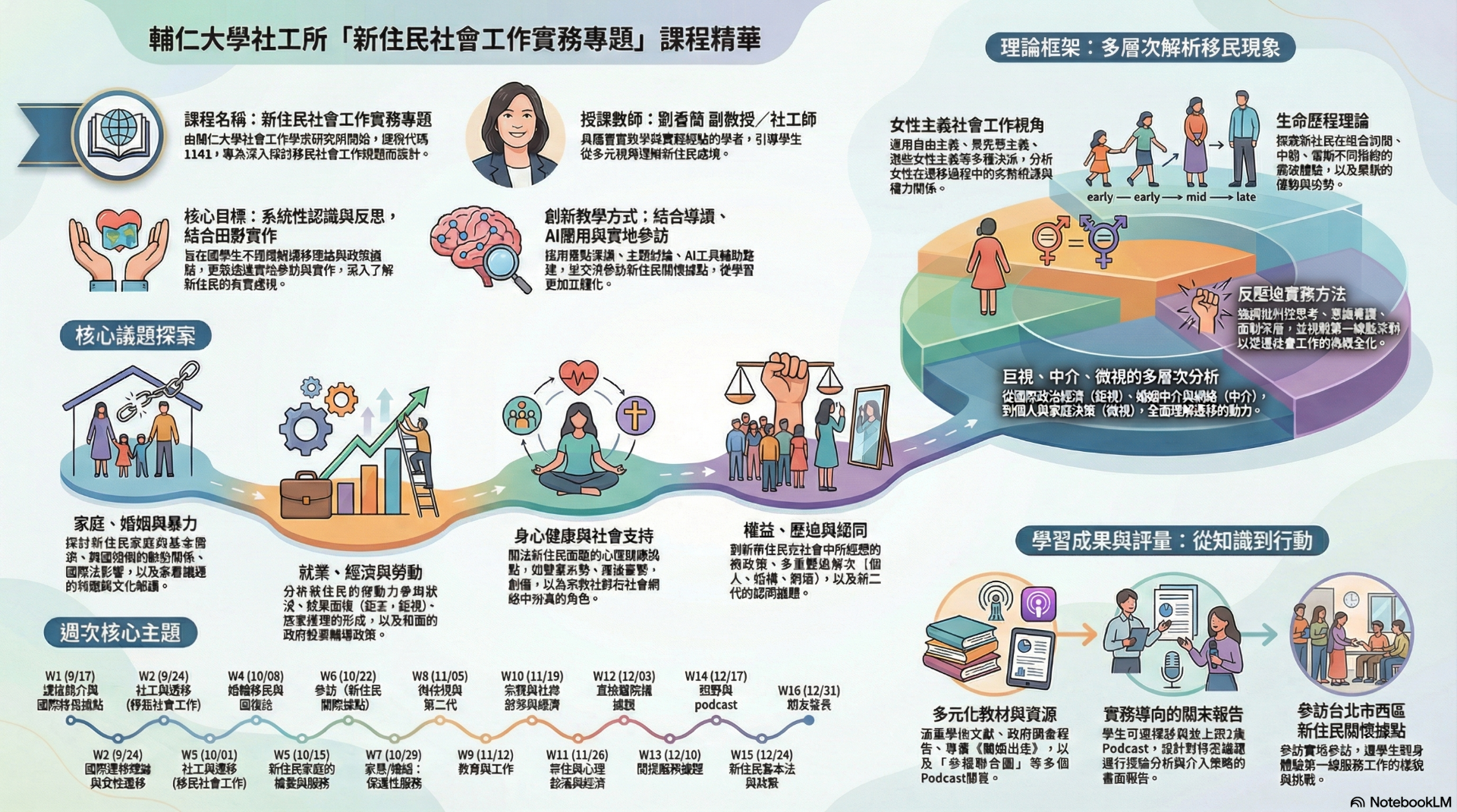 從自己生命歷程體驗到遷移與流動對個人-社會關係的影響,進入到新住民群體的生命故事, 從故事了解服務體系的現狀以及從姊妹的觀點展開服務或政策的省思